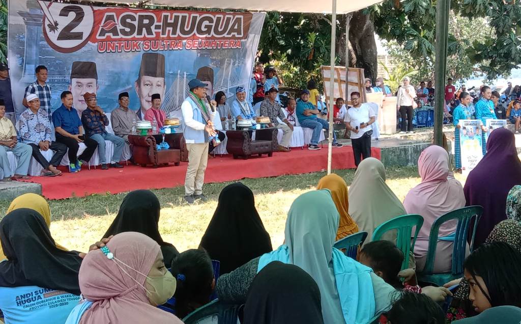 Swarasultra.id, Buton – Calon Wakil Gubernur Sulawesi Tenggara (Sultra)nomor urut dua, Hugua melakukan kampanye terbatas di Kecamatan Pasar Wajo, Kabupaten Buton pada Minggu (27/10/2024). Kampanye terbatas tersebut kembali dihadiri oleh ribuan simpatisan dan relawan yang sudah tidak sabar mendengarkan orasi yang disampaikan paslon nomor urut dua, ASR-Hugua.