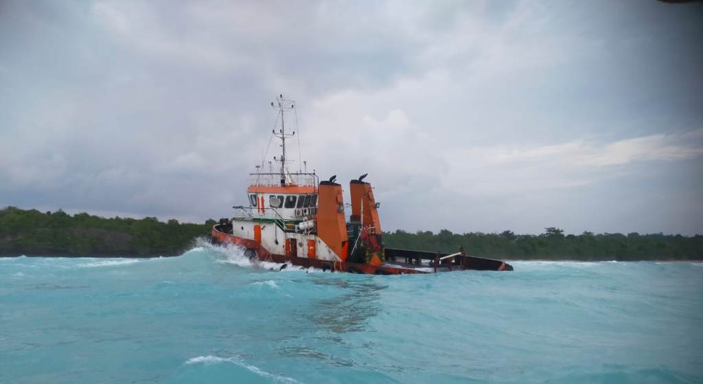 Swarasultra.id, Kendari – Sebuah kapal Tugboat (TB) Iska 1165 kandas akibat dihantam gelombang di sekitar Perairan Tanjung Goram, Desa Lantagi, Kecamatan Kulisusu, Kabupaten Buton Utara (Butur) Provinsi Sulawesi Tenggara (Sultra) pada Sabtu (28/6/2025).