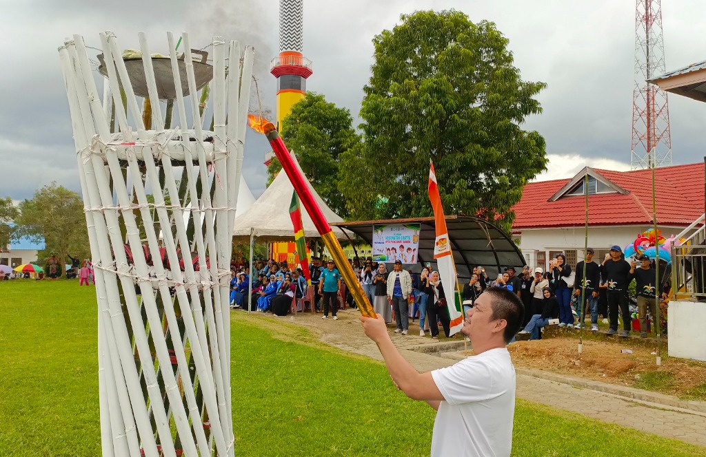 Dalam penyelenggaraan kali ini, Bupati Koltim juga membagikan susu kepada peserta yang terdiri dari para pelajar sekaligus Bupati menyalakan obor di dampingi seluruh pelajar yang hadir sebagai pertanda dimulainya penyelenggaraan O2SN.