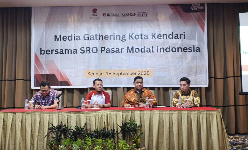 Swarasultra.id, Kendari – Self-Regulatory Organization (SRO) Pasar Modal Indonesia yang terdiri dari Bursa Efek Indonesia (BEI), Kustodian Sentral Efek Indonesia (KSEI), dan Kliring Penjaminan Efek Indonesia (KPEI), menegaskan bahwa investasi pasar modal di Indonesia, termasuk di Sulawesi Tenggara, terjamin aman dan terlindungi. Hal ini disampaikan dalam kegiatan Media Gathering bersama wartawan di salah satu hotel di Kendari pada Kamis (18/9/2025), sebagai penutup rangkaian sosialisasi pasar modal di daerah.
