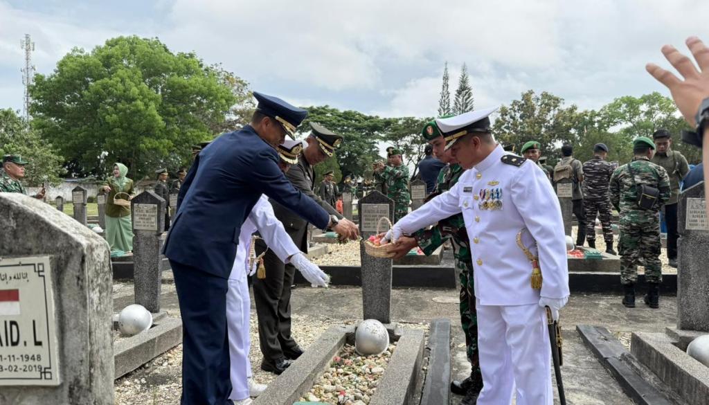Swarasultra,id, Kendari – Jajaran TNI dan Polri di Sulawesi Tenggara menggelar upacara Ziarah Nasional di Taman Makam Pahlawan (TMP) Watubangga, Sabtu (4/10/2025). Kegiatan ini sebagai rangkaian memperingati Hari Ulang Tahun (HUT) ke-80 Tentara Nasional Indonesia (TNI).