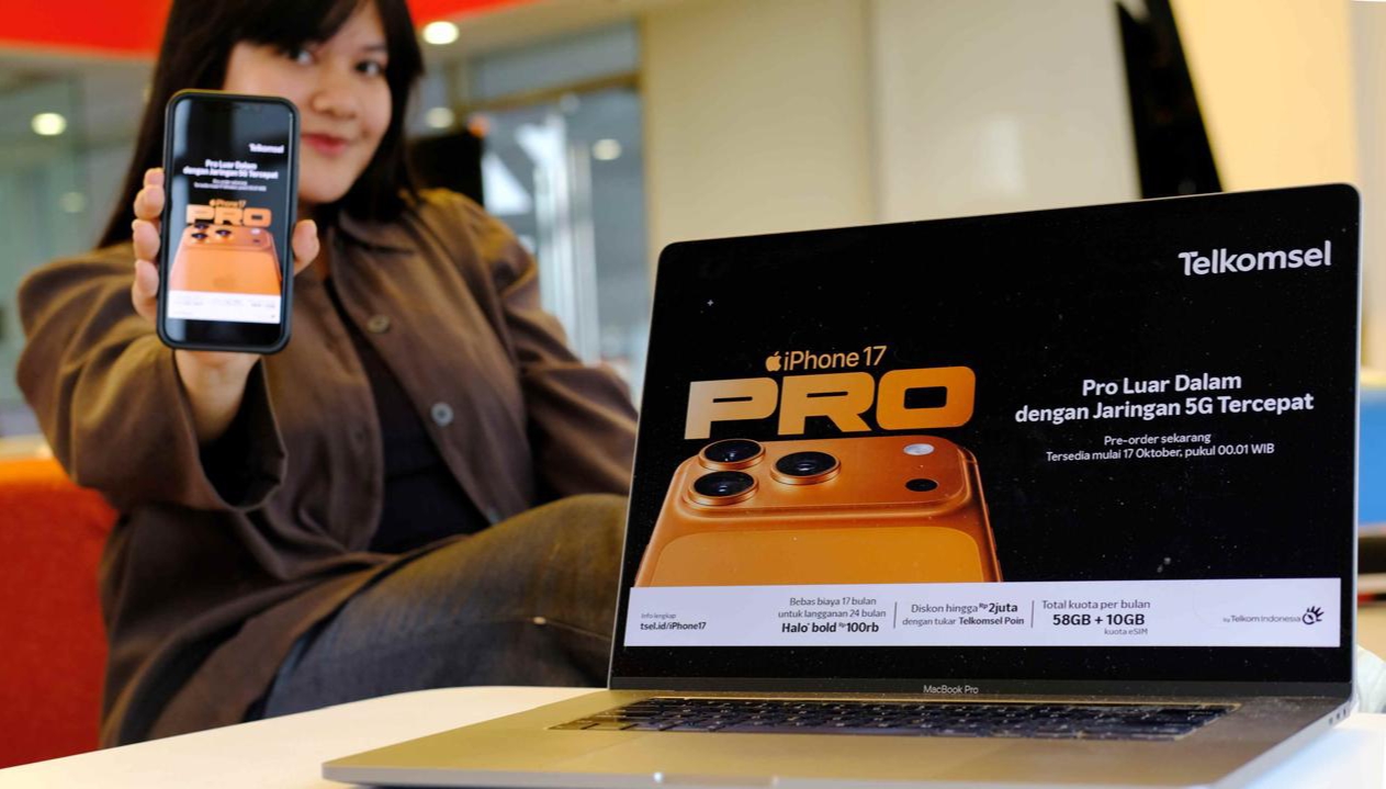 Swarasultra.id, Jakarta – Telkomsel menawarkan produk terbaru Apple termasuk iPhone 17, iPhone Air, iPhone 17 Pro, dan iPhone 17 Pro Max. Pelanggan dapat melakukan pemesanan awal (pre-order) untuk model iPhone terbaru pada 10 Oktober 2025, dengan ketersediaan mulai 17 Oktober 2025. Untuk informasi lengkap mengenai harga dan ketersediaan, silakan kunjungi tsel.id/iPhone17.