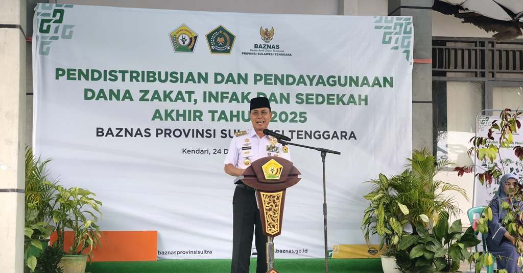 Swarasultra.id, Kendari – Gubernur Sulawesi Tenggara, Mayjen TNI (Purn) Andi Sumangerukka, didampingi Kepala Badan Amil Zakat Nasional (BAZNAS) Sultra Punardin, Rabu (24/12/2025) mendistribusikan dana Zakat, Infaq, dan Sedekah (ZIS) tahap akhir tahun 2025 bertempat di kantor Baznas Sultra.