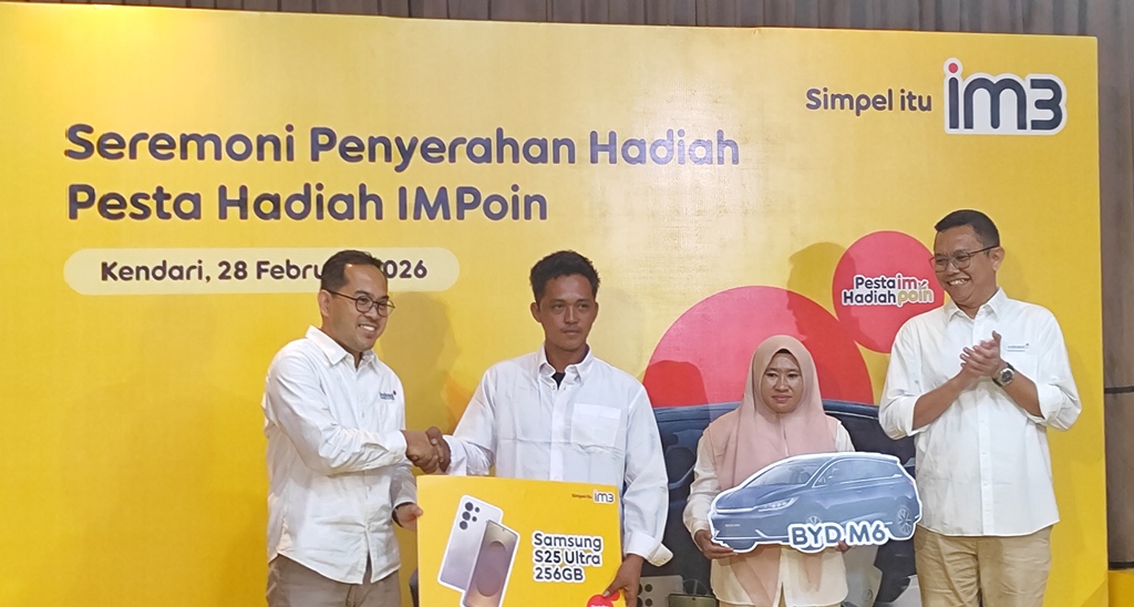 Penyerahan hadiah dilakukan secara seremonial di Swiss-Belhotel Kendari, Sabtu (28/2/2026) sore oleh Act Head of Circle Kalisumapa Indosat, Yogo Pandego Bagus Widodo.