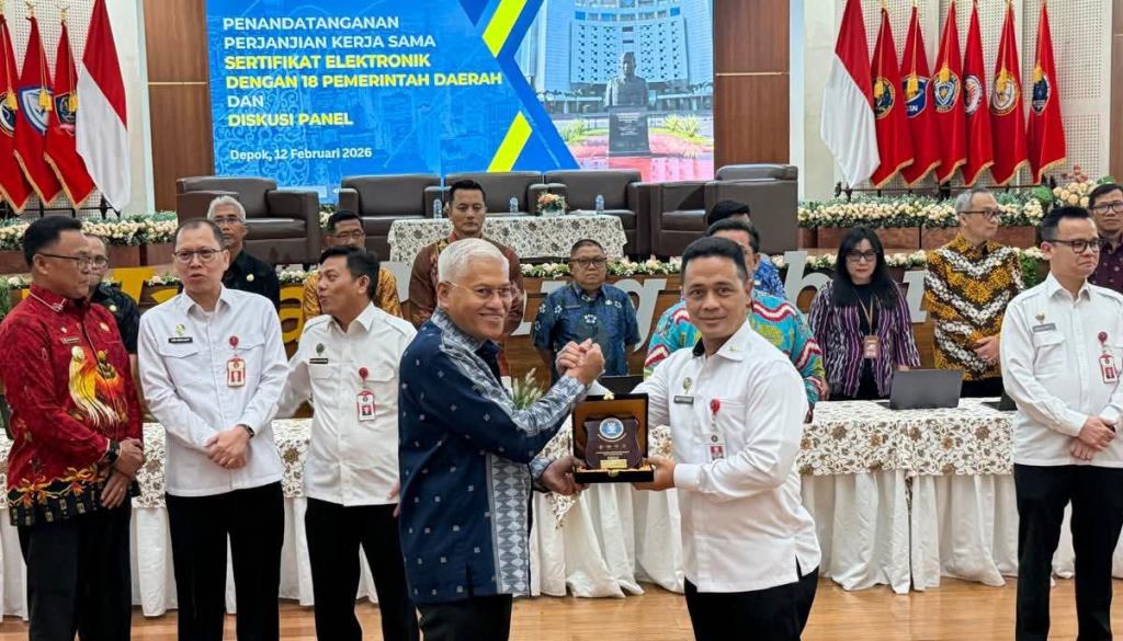 Sekretaris Daerah Sultra Asrun Lio mewakili Pemprov Sultra sedangkan pihak BSSN diwakili oleh Kepala Balai Besar Sertifikasi Elektronik BSSN Jonathan Gerhard Tarigan, resmi menandatangani perjanjian kerja sama pemanfaatan sertifikat elektronik bersama BSSN di Depok, Jawa Barat pada Kamis (12/2/2026).