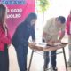Dalam kesempatan itu, Gubernur Sultra menyerahkan seragam sekolah dan santunan kepada siswa-siswi SLB kota Kendari.