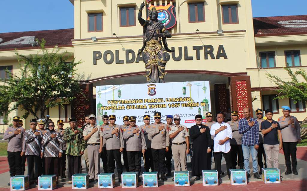 Dalam kesempatan tersebut, Kapolda Sultra menyampaikan bahwa penyerahan bingkisan Lebaran idulfitri 1447 Hijrah sebanyak 4.799 merupakan bentuk perhatian dan kepedulian institusi kepolisian kepada keluarga besar Polri serta para mitra yang selama ini turut mendukung pelaksanaan tugas kepolisian di wilayah Bumi Anoa.