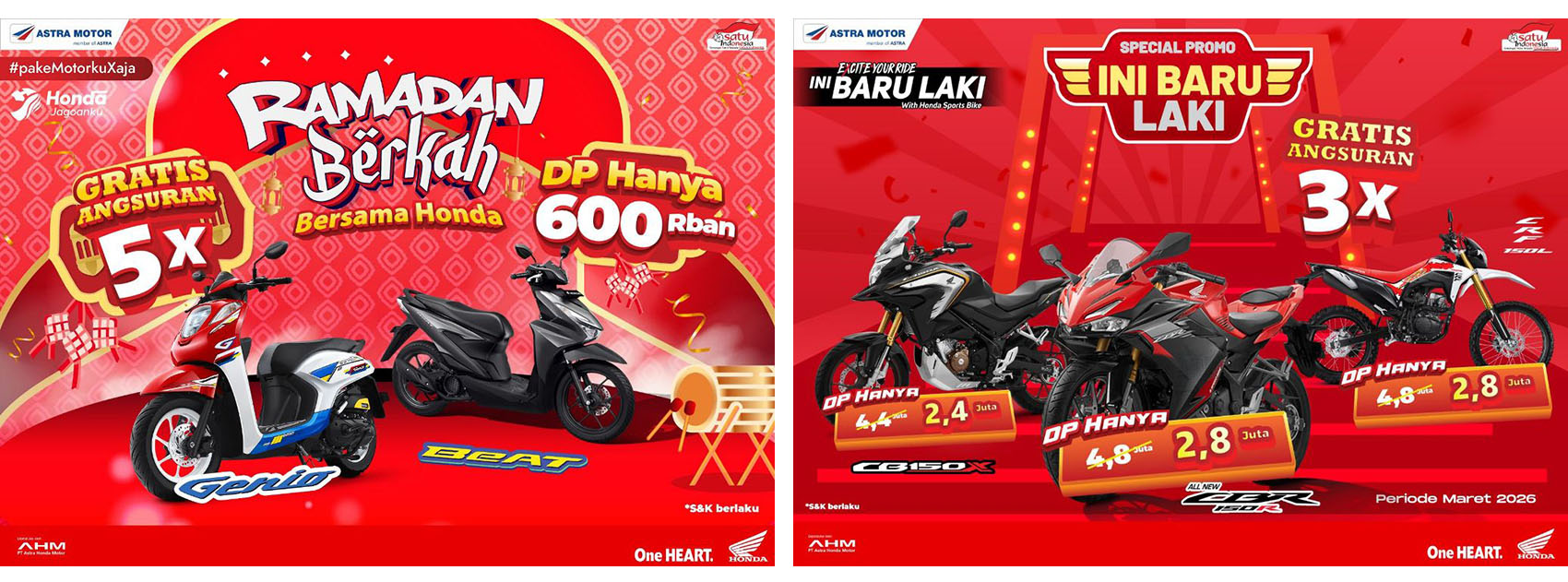 “Melalui promo spesial sepanjang bulan Maret ini, kami ingin memberikan kesempatan bagi masyarakat untuk memiliki sepeda motor Honda dengan penawaran yang lebih ringan dan menguntungkan. Kami berharap berbagai program ini dapat menjawab kebutuhan mobilitas konsumen sekaligus menjadi bentuk apresiasi kami kepada masyarakat yang terus mempercayai Honda,” ujar Kresna.