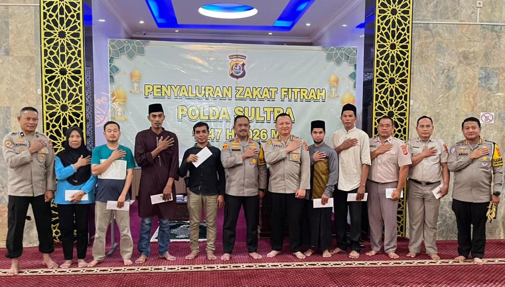 Swarasultra.id, Kendari – Menyambut Hari Raya Idulfitri 1447 H/2026, Kapolda Sulawesi Tenggara, Irjen Pol. Didik Agung Widjanarko, S.I.K. M.H menyalurkan zakat fitrah kepada ratusan penerima di wilayah hukum Polda Sultra bertempat di Masjid Al-amin Polda Sultra pada Selasa (17/3/2026).
