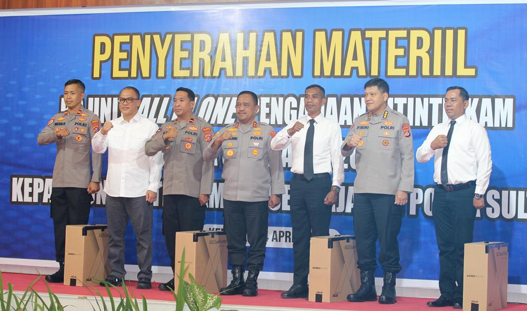 Kapolda Sultra Irjen Didik Agung Widjanarko S.I.K. M.H menyerahkan secara simbolis 107 unit komputer, didampingi Irwasda Kombes Johanes Pangihutan Siboro S.H. M.H, Selasa (14/4/2026) di salah satu hotel di Kendari.
