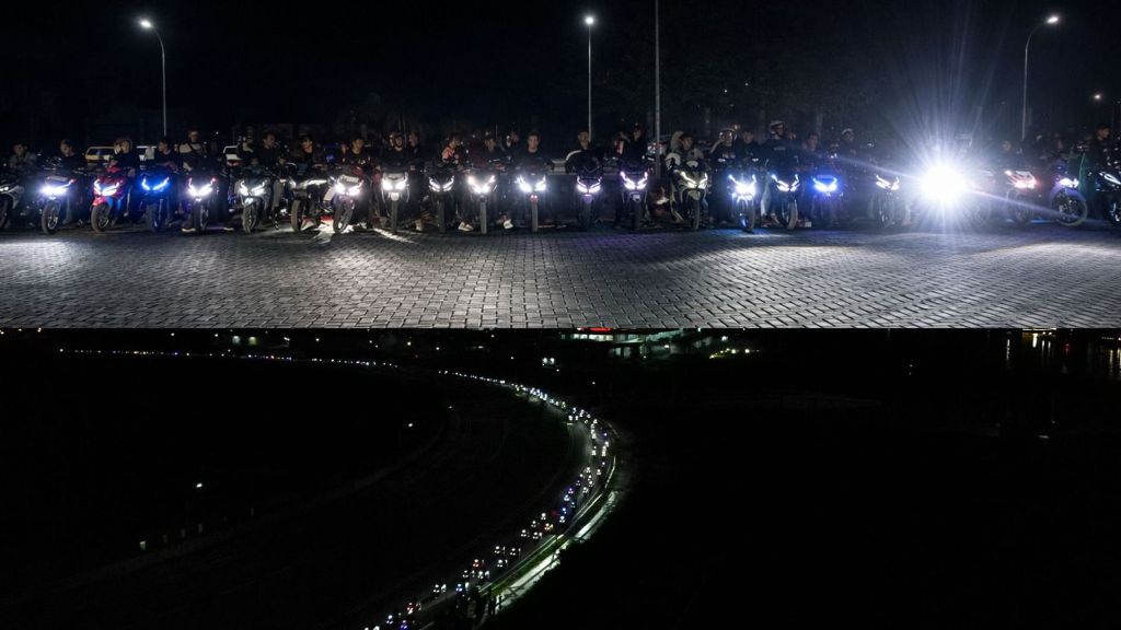 Ratusan peserta yang berasal dari berbagai komunitas, mulai dari segment matic, sport, hingga cub, berkumpul di Pantai Biru Makassar sebagai titik awal kegiatan. Suasana penuh kebersamaan dan semangat komunitas sudah terasa sejak awal, sebelum para peserta memulai perjalanan night ride mengelilingi Kota Makassar.