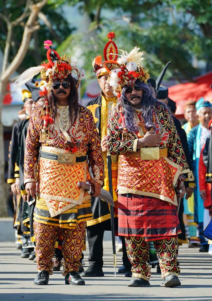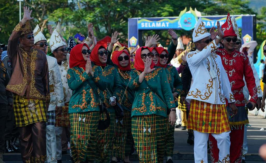 Peserta pawai tampil memukau dengan pakaian adat khas daerah masing-masing, diiringi musik tradisional dan atraksi seni yang memikat. Berbagai elemen masyarakat turut berpartisipasi, mulai dari Paskibraka, Polri, lembaga adat Tamalaki, perbankan, hingga pelaku UMKM dan pelajar.