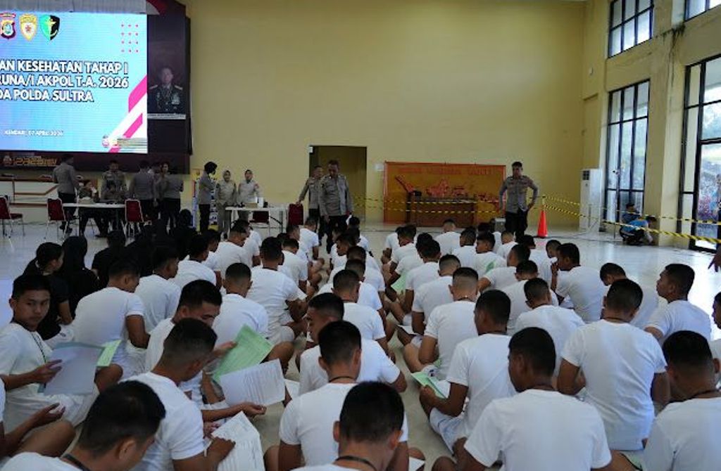 Swarasultra.id, Kendari – Sebanyak 64 calon taruna/taruni akademi kepolisian (Akpol) mulai menjalani seleksi kesehatan tahap pertama di Polda Sultra pada Selasa (7/4/2026). Tahapan ini menjadi ujian perdana yang krusial bagi para pendaftar sebelum melangkah ke tahapan seleksi berikutnya yang lebih menantang.