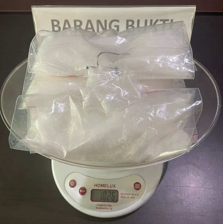 “Total barang bukti yang diamankan berupa 11 paket sabu dengan berat bruto 1.026 gram, berikut alat pendukung pengemasan, telepon genggam, kendaraan roda empat, serta perlengkapan lain yang diduga digunakan dalam jaringan peredaran narkotika,” ungkap Kombes Amri Yudhy dalam keterangannya.
