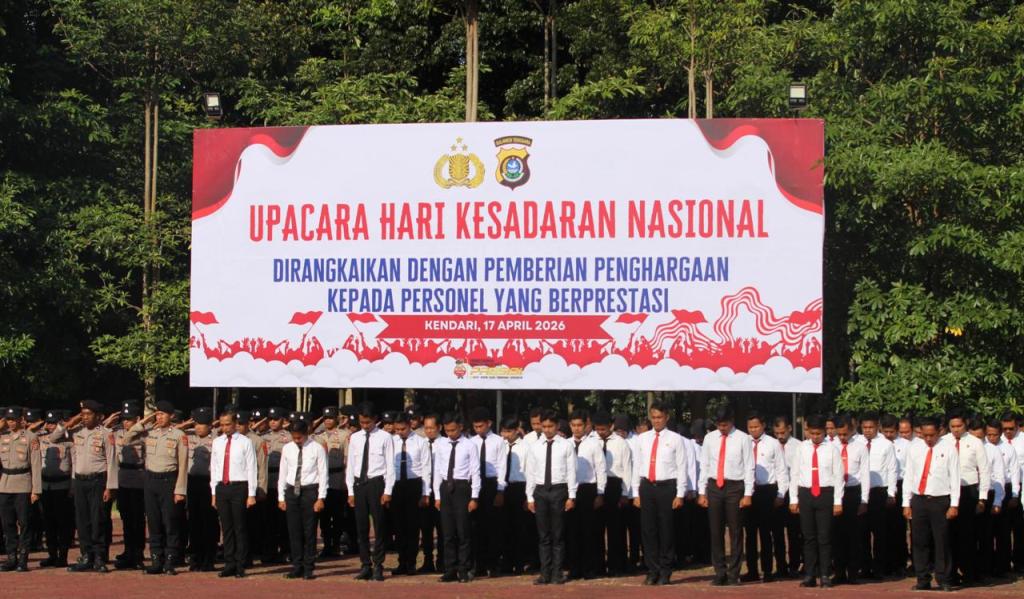 Swarasultra.id, Kendari – Memasuki periode April 2026, Kapolda Sultra Irjen Pol Didik Agung Widjanarko mengajak seluruh jajarannya untuk merefleksikan kembali jati diri sebagai pelindung dan pengayom masyarakat. Pesan ini menjadi inti dari Upacara Hari Kesadaran Nasional yang digelar di Mapolda Sultra hari ini, Jumat (17/4/2026) dan turut dihadiri oleh Wakapolda Sultra Brigjen Pol Dr. Gidion Arief Setyawan, Irwasda Polda Sultra, para Pejabat Utama (PJU), serta seluruh personel Polri dan PNS lingkup Polda Sultra.